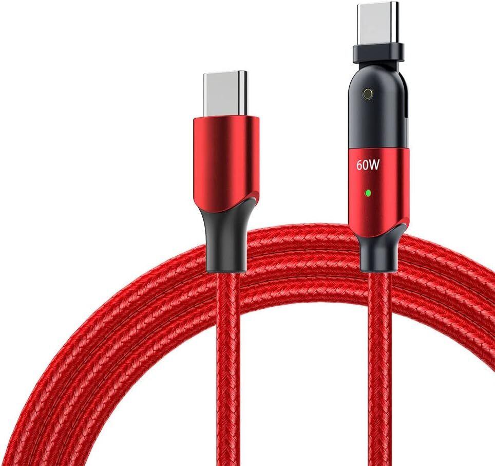 XYZA USB C Type C to Type C ケーブル 180度 回転 スイング(ゲーミング ケーブル レッド) PD対応 60W 3A急速充電 高耐久ナイロン編み iPad mini6 (2021)、MacBook、iPad Pro/Air、Galaxy、Sony、Pixel 等Type-c機種対応 コード長 1.2m